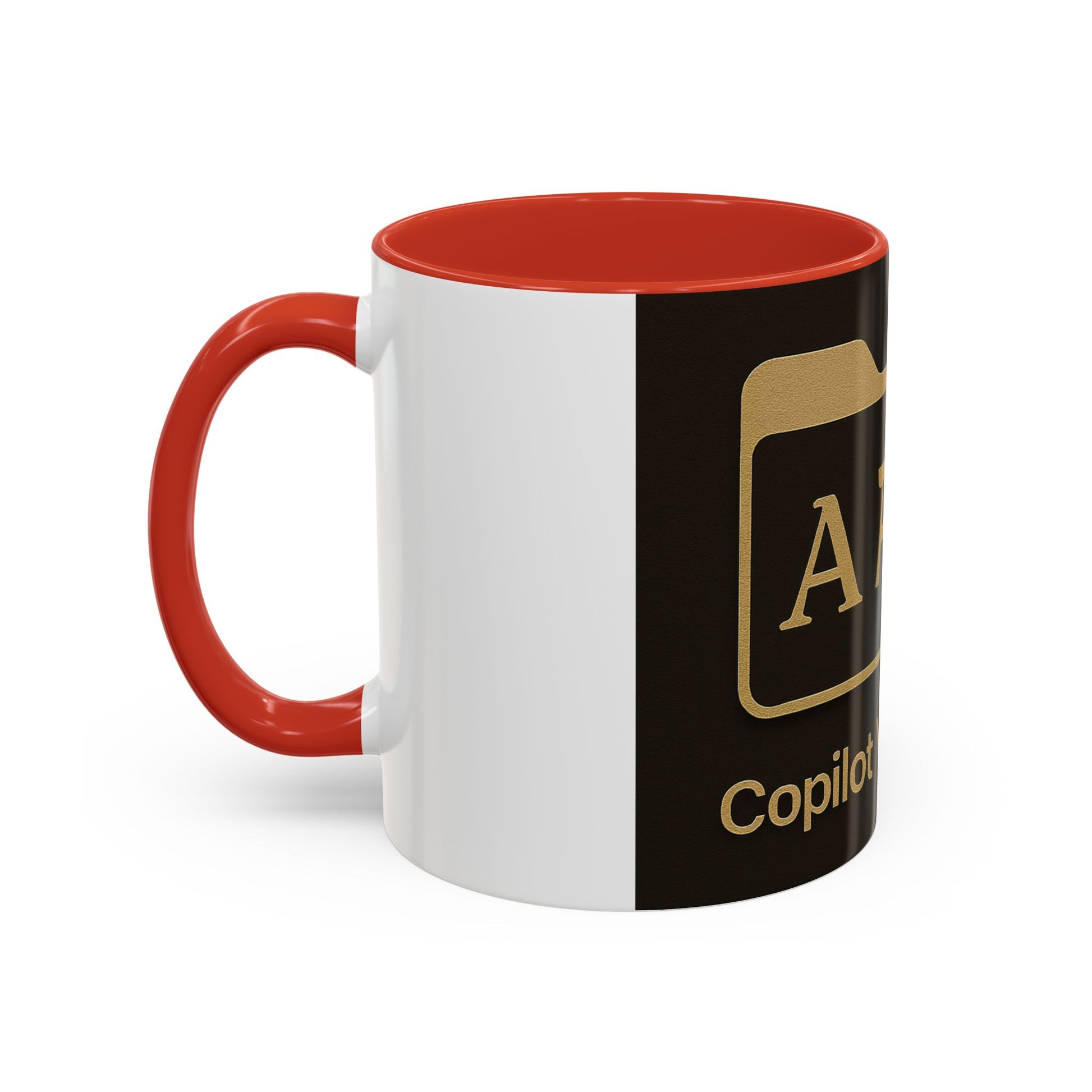 This glossy ceramic mug brings a quiet, focused energy to your morning routine. The deep black exterior and handle frame a warm, gold emblem — a compact folder icon with rune-like letters and the phrase “Copilot Visiones.” It reads like a private sigil for creators, coders, and dreamers who craft in low light and think in outlines. Hold it while sketching wireframes, drafting email threads, or planning the next late-night project. The contrasting white interior (on the reverse panel) keeps the design crisp, while the colored handle and glossy finish make the mug feel intentional and substantial. It’s made to sit on a cluttered desk, accompany long editing sessions, and remind you to keep building, one sip at a time.