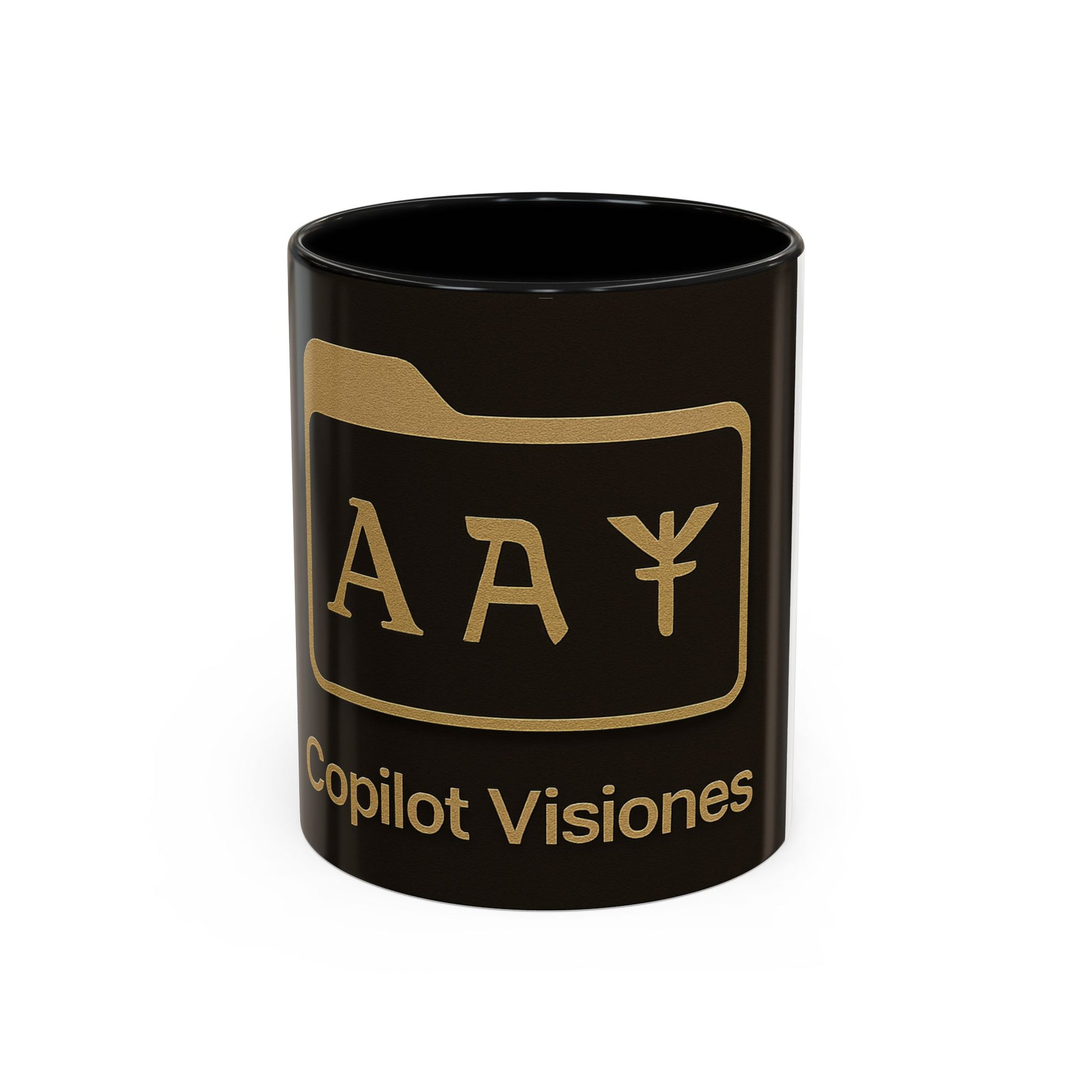 Copilot Visiones Accent Coffee Mug — Black & Gold AI Folder Logo (11/15 oz)